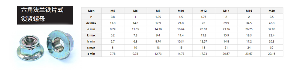 六角法蘭鐵片式鎖緊螺帽